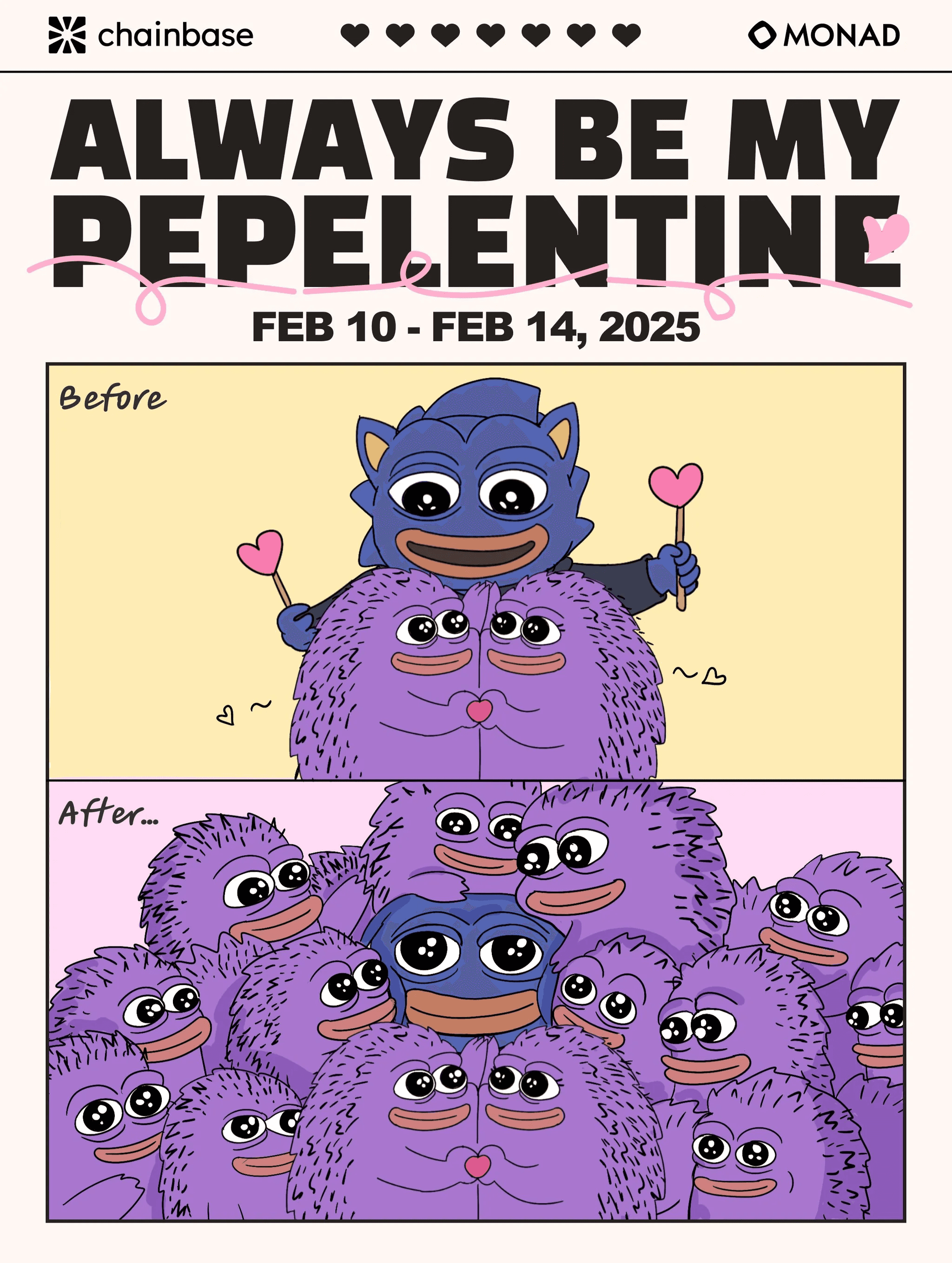 Chainbase Chat & Meme Campaign: Focused on community engagement with events like “Happy Galentine!” and the “Always Be My Pepelentine” contest in partnership with Monad.